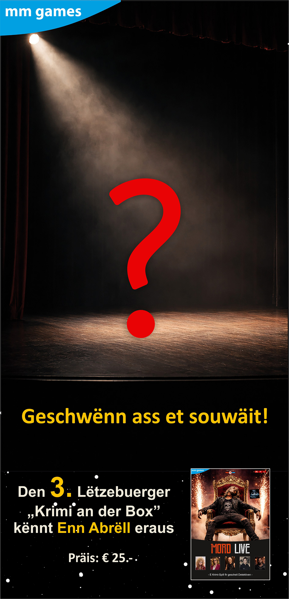 An elo geet et "kriminell" weider mat dem "Krimi an der Box", Krimi-Spiller op Lëtzebuergesch fir gescheit Detektiven.